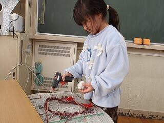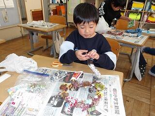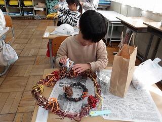 生活科で育てた朝顔のつるを使ったリース作りです。