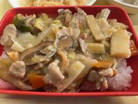 セルフ中華丼(ごはん、中華丼の具)、牛乳、