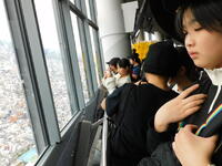 展望デッキから見る東京の景色に感動しました。その後、フードコートで昼食をとり、お土産を買いました。