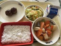 ごはん、牛乳、照り焼き肉団子、