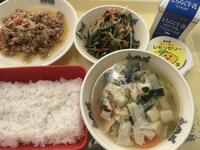 かんぴょうサラダ、ゆばとわかめの味噌汁