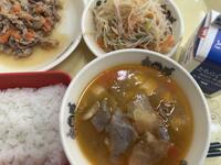 ごはん、牛乳、ハンバーグカレー(ハンバーグ、ポークカレー)、
