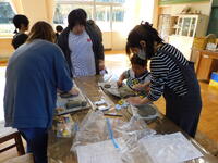 本日は親子活動でした。1~3年生は粘土(焼き物)、4・5年生はアーチェリー体験、6年生はタイダイ染めでした。親子で貴重な体験ができました。