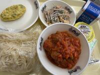(ゆでスパゲッティ、ソース)、牛乳、