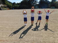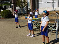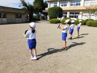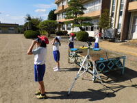 「かげと太陽」の学習で、かげ踏みおにをしたり遮光板を使って太陽を見たりしました。とてもよい天気で、観察には最高の1日でした。