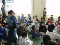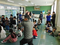 本日は、ALTサンタと「Merry Merry Christmas」のかけ声に合わせて、ジェスチャーでじゃんけんを行いました。グーはサンタが大きな袋を持つポーズ、パーはトナカイのポーズ、チョキは「雪だるま」で、サンタと同じポーズをすると座らなければなりません。2回行って、チャンピオンが3人という結果でした。お昼には、英語の曲をかけました。少しずつでも、英語に親しんでくれるといいですね。