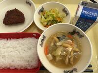 塩昆布和え、じゃがいもと小松菜の味噌汁