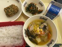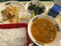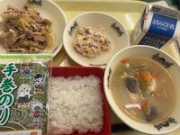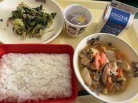 のり酢和え、ピリ辛味噌汁、レモンタルト