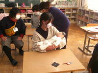 6年生を対象に、産婦人科の助産師さん・こども課の看護師さん等に来ていただき、思春期教室が実施されました。思春期の体と心の変化について学び、赤ちゃんの人形を抱いたり、 妊婦体験などを行ったりしました。
