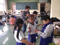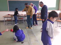 ボランティアの方11名に来ていただき、1・2年生が「こま回し」「紙飛行機」「おはじき」「あやとり」を教えたいただきました。とても楽しそうでした。