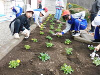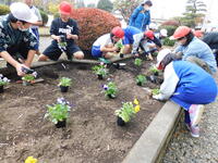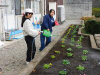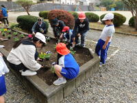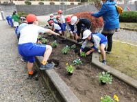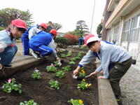 本日の花立タイムは、ペア学年でパンジー・ビオラの苗を花壇に植えました。