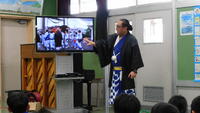 鍛冶町若衆団の方に来ていただき、4年生以上の児童が山あげ祭について学びました。山あげ祭の歴史や目的、祭りの様子などを分かりやすく説明していただきました。山あげ祭に興味をもつ児童が増えました。