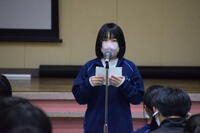 また、各学年代表生徒による作文発表も行われました。3名とも、今学期の行事や学習を通して学んだことを振り返り、新学期に向けた目標を力強く発表していました。