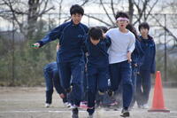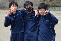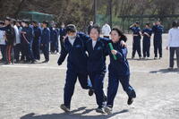 青空と強風の中、生徒会レクリエーションとして3人4脚リレーを行いました。