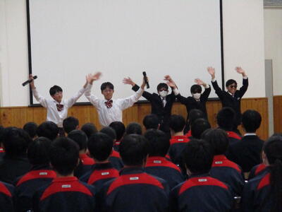 生徒会新役員を中心に企画・運営し、3年生送る会を行いました。