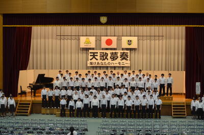 今日まで、各クラスで練習を重ねてきた合唱。本番は、どのクラスも心を一つにして、すばらしいハーモニーを奏でました。また、各種発表や吹奏楽の演奏など、緊張の中にも笑顔あふれる創生祭となりました。