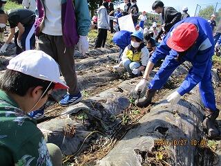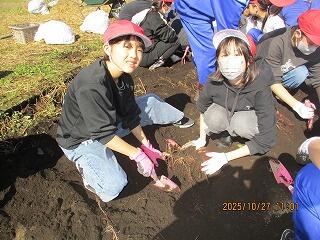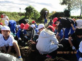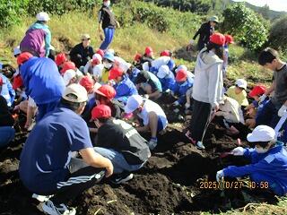 暖かな天候のもと、全校生でさつまいも掘りを行いました。