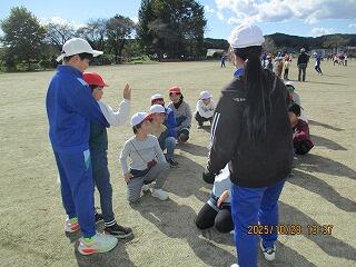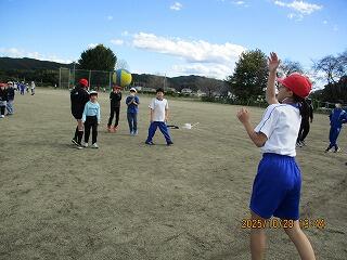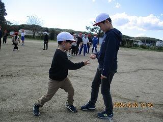 2つの縦割り班が一緒になり、へび鬼や鬼ごっこ、ドッチボールで盛り上がっていました。