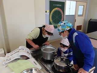 お鍋での炊飯ですが、火加減に気を付け、どの班も上手に炊き上がっていました。