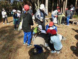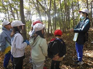 子どもたちはなかよし班ごとに近くの美しい里山林でレクリエーションを楽しみました。