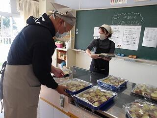 その間、保護者ボランティアの方々が、今年収穫したさつまいもをおいしく蒸かしてくださいました。