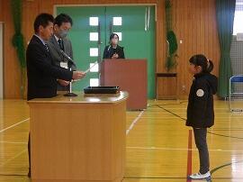 市長様、教育長様にご来校いただき、今年度2回目のすこやか表彰式を行いました。