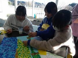 6年生は図工室と家庭科室に分かれて卒業制作を行いました。