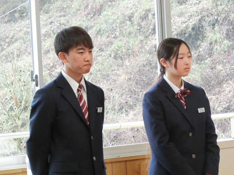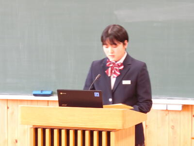 表彰式後は、第2学期終業式を行いました。代表生徒の発表からは、自分が努力したことや仲間と高め合って活動したことなど、自分の成長を実感でき、充実した学校生活を送ることができたことが伝わりました。新しい年が、さらに充実した年となるよう、願っています。