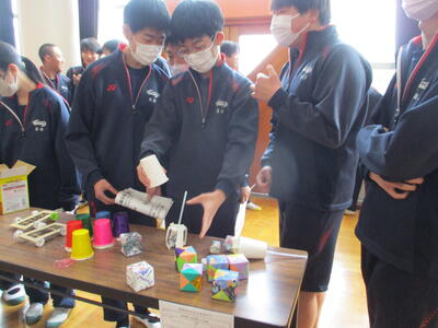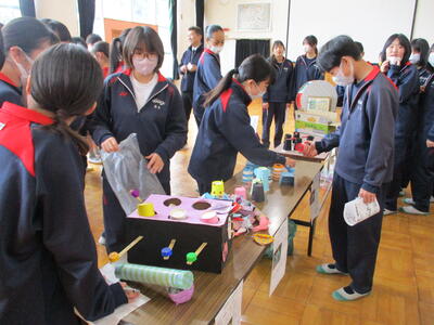 本来ならば、幼稚園訪問をして幼児と一緒に遊ぶ計画でしたが、感染症の流行から実施が叶わず、このような形で展示会を行いました。遊んだ後は、感想を書くなど、アンケートを実施し、3年生振り返りに活用しました。